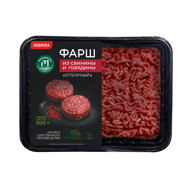 Рубленый мясной полуфабрикат охлаждённый. Фарш «Из свинины и говядины «Отборный»
